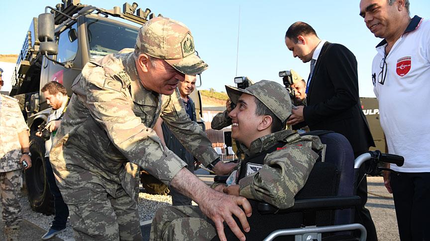 Alınan bilgiye göre, İzmir'de devam eden EFES-2018 Tatbikatı kapsamında açılan silah sergisini ziyaret eden Orgeneral Hulusi Akar, genetik bir rahatsızlığı bulunan Şendoğan Ege Katmerci'yle de buluştu.