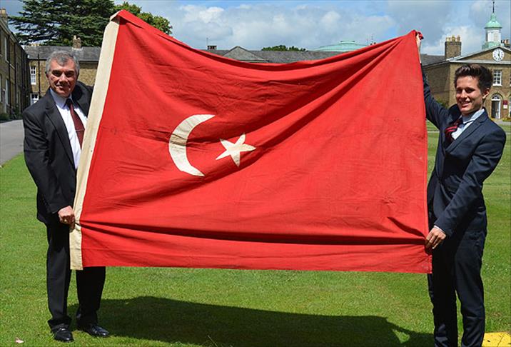 İngiltere'nin başkenti Londra'nın yakınında bulunan ve yaklaşık 700 öğrencinin eğitim aldığı Haileybury Koleji'nde düzenlenen törende, Turner ailesi, yaklaşık 100 yıldır sakladığı bayrağı Türkiye'nin Londra Büyükelçisi Ünal Çeviköz'e teslim etti.