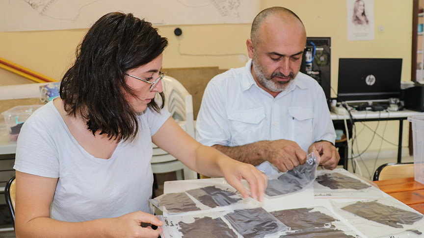 Kültür ve Turizm Bakanlığının izni, Doğu Anadolu Projesi (DAP) Bölge Kalkınma İdaresi Başkanlığı ve Doğu Anadolu Kalkınma Ajansının desteklediği kazı çalışmaları sırasında ortaya çıkarılan belgelerin tasnifi yapılıyor.
