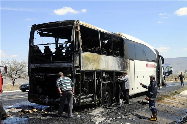 Nevşehir-Ürgüp karayolundan Ürgüp yönüne giden ve içinde yolcu bulunmayan Hacı Hasan Ekmekçioğlu'nun (37) kullandığı 50 DN 400 plakalı yolcu otobüsü, Ortahisar mevkesinde henüz belirlenemeyen bir nedenle motor kısmından alev aldı.