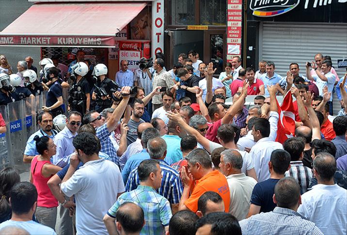 Linç edilmekten polisin yardımıyla kurtulan zanlı, bir işyerine sokuldu. Zanlı, burada da kendisine tepki gösteren esnafa eline geçen eşyaları fırlatmaya çalıştı.