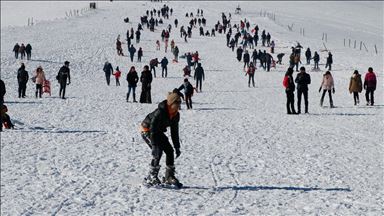 Hafta sonu tatilinde kayak merkezine gelenlerden bazıları yamaç paraşütüyle atlayış gerçekleştirirken, bazıları da kayak ve snowboard yapıp kızakla kaymanın keyfini yaşıyor.