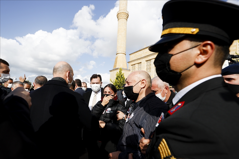 Dışişleri Bakanı Çavuşoğlu ve İçişleri Bakanı Soylu, cami avlusunda bekleyen şehidin ailesine başsağlığı diledi.