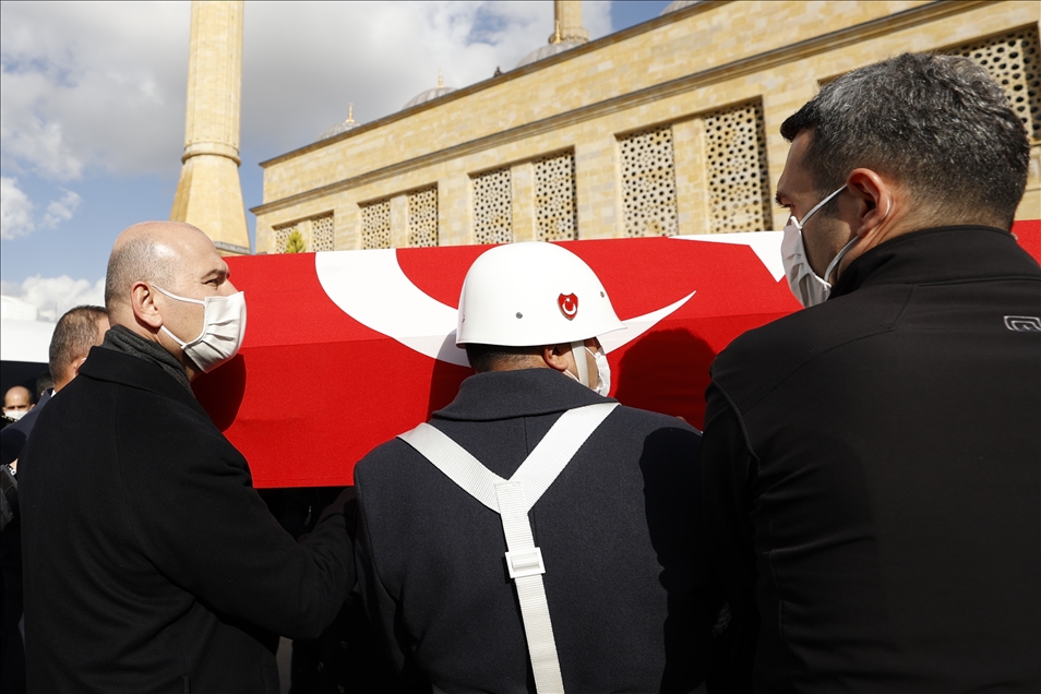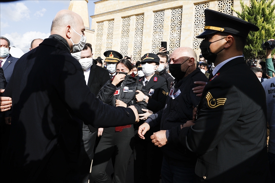 Namazın ardından cenaze arabasına konulan şehidin naaşı, toprağa verilmek üzere Etimesgut ilçesindeki Elvanköy Mezarlığı'na götürüldü.