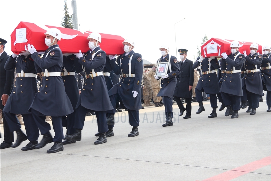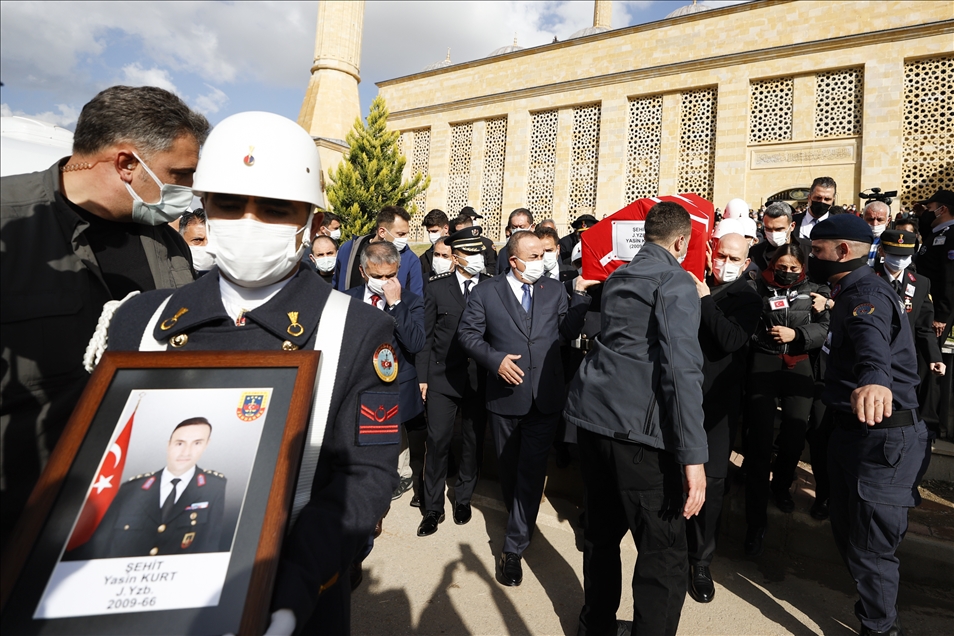 Suriye'nin Rasulayn ilçesindeki yol kontrol noktasına PKK/YPG'li teröristlerce düzenlenen bombalı saldırıda şehit olan Jandarma Yüzbaşı Yasin Kurt ve Jandarma Uzman Çavuş Oğuzhan Anar toprağa verildi.