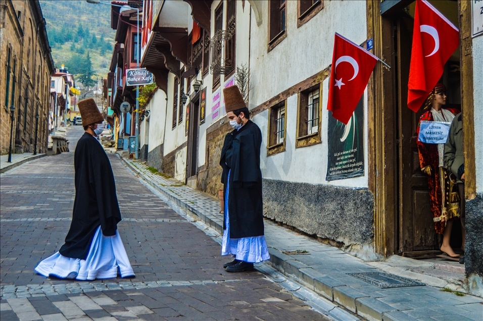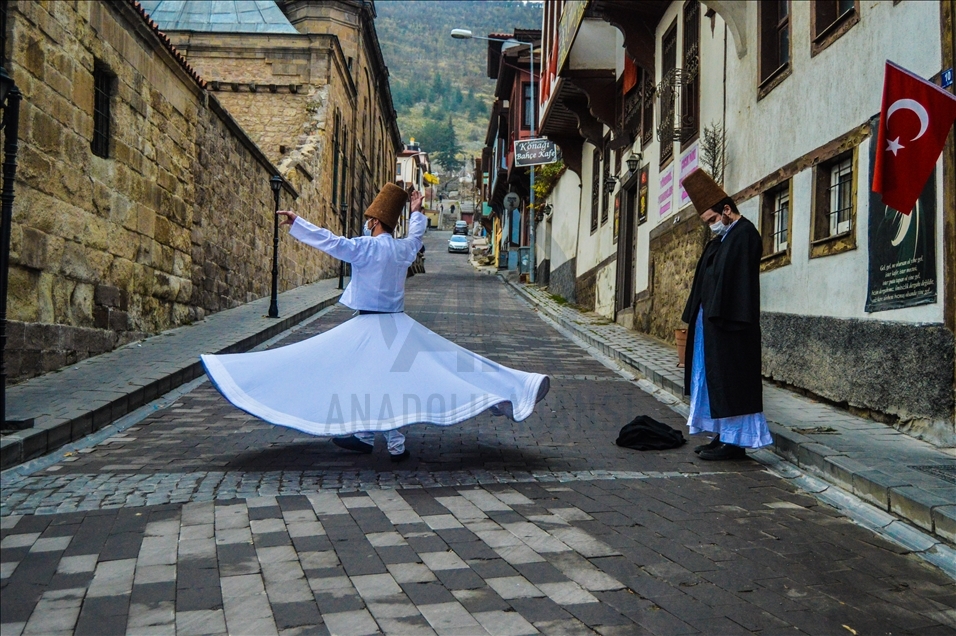 Bu yıl Kovid-19 tedbirleri kapsamında etkinlikleri sınırlandırılan Uluslararası Mevlevi Kültürünü Yaşatma Derneği, Mevleviliğe dikkat çekmek ve farkındalık oluşturmak amacıyla kentin tarihi mekanı rengarenk Afyon Konakları arasında sema gösterisi düzenledi.