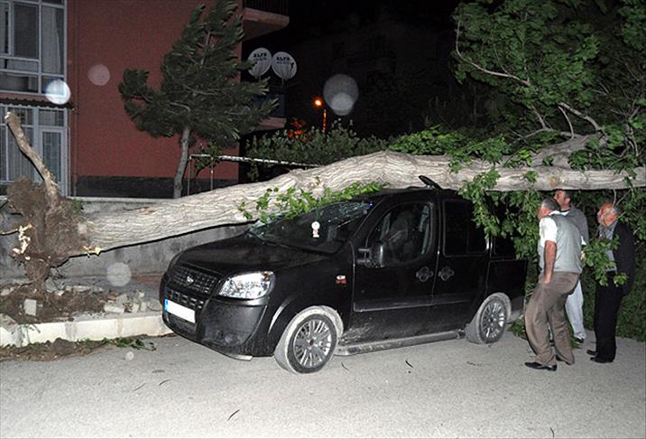 Saat 00.30 sıralarında etkisini artıran şiddetli rüzgar nedeniyle kökünden sökülen bir ağaç, Gazi Mahallesi Şehit Nurullah Oymak Caddesi'nde park halinde bulunan 03 UV 235 plakalı ticari aracın üzerine devrildi. Ticari araçta hasar oluşurken cadde trafiğe kapandı. Araç sahibi Ali Osman Akman, AA muhabirine yaptığı açıklamada, rüzgardan sonra aracının alarmının çalmaya başladığını belirterek, dışarı çıktıklarında olayı fark ettiklerini söyledi.