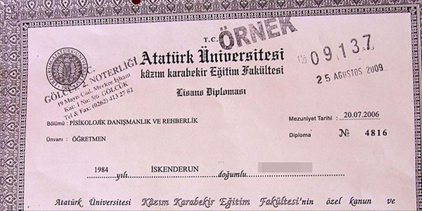 Yapılan incelemede Atatürk Üniversitesince söz konusu diplomanın hazırlanmadığının kesin olarak öğrenildiğini dile getiren Yazıcı, ''Bunun üzerine İ.K'nın merkezle ilişiği kesildi. Soruşturma devam ediyor'' dedi.