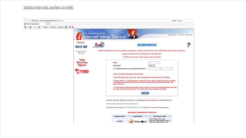 Başkanlıktan yapılan duyuruya göre, GİB'in adı, logosu ve ekran görüntüleri kullanılarak trafik para cezasına ilişkin sahte e-postaların gönderildiği tespit edildi.