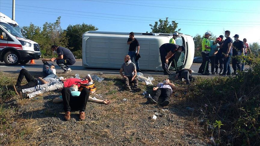 Sürüklendikten sonra devrilen minibüsteki sürücü ile işçiler Gökhan Cebeci (25), Sefa Sarı (26), Saim Tarım (38), Özgür Gür (26), Erkan Öztürk (25), Emin Sürem (40), Murat Köse (32), Mhdnour Saleh (21), Hayati Alp (32), Ömer Can Günay (25), Muhammed Şamil Demirel (23), Ayhan Başar (48), Mümin Mutlu (27), Selim Demirbaş (38) ile Sedat Mert (30) yaralandı.