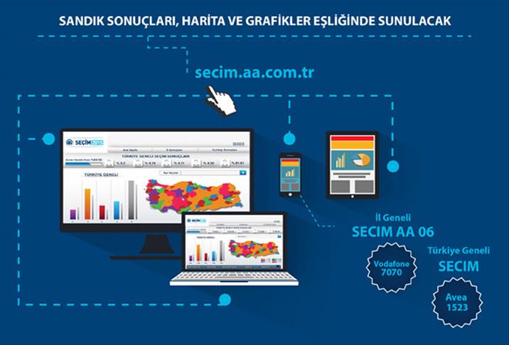 Vodafone kullanıcılarının ise SECIM boşluk AA boşluk İL PLAKA kodunu yazıp 7070'e kısa mesaj göndermesi gerecek. İl plaka kodu kısa mesajla gönderilen seçim çevresine ilişkin sonuçlar, anında abonenin telefonuna kısa mesaj olarak ulaşacak.