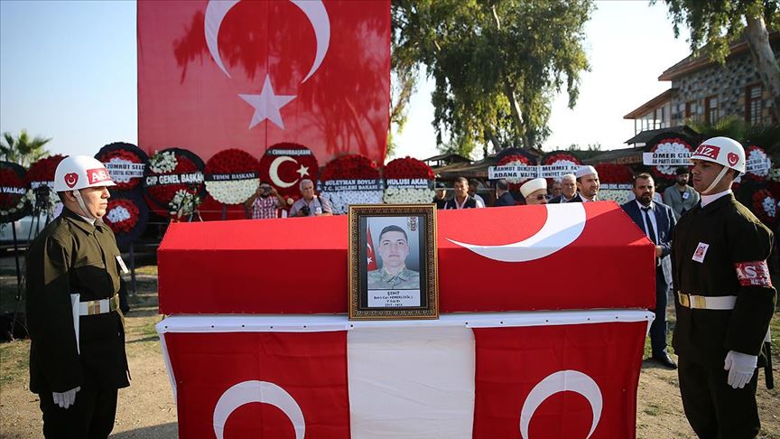 Barış Pınarı Harekatı kapsamında, Suriye'nin Resulayn bölgesinde 11 Ekim'de teröristlerin açtığı ateşle yaralanan ve kaldırıldığı Ankara Gülhane Eğitim ve Araştırma Hastanesinde şehit olan Bekir Can Hereklioğlu'nun (24) naaşı, cenaze töreni için Yumurtalık Merkez Camisi'ne götürüldü.