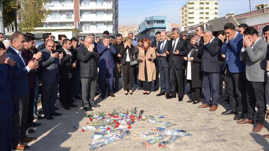 Vali Hulusi Şahin yaptığı konuşmada, terör örgütü PKK'nın, bölge insanını her alanda geri bırakmak istediğini, çocukların eğitimi için bölgeye gelen öğretmenleri korkutmak amacıyla terör saldırıları gerçekleştirdiğini belirterek, "Hain saldırıyla bölge insanına kan kusturdu. Şenay Aybüke Yalçın, Sıtkı Abdioğlu, Necmettin Yılmaz, Neşe Alten ve diğer şehit öğretmenlerimize bir kez daha Allah'tan rahmet diliyor, şehit öğretmenlerimizin şahsında bütün öğretmenlerimizin anlamlı gününü kutluyoruz." dedi.