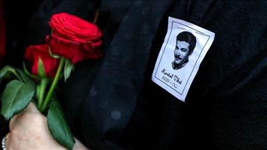 Şehidin eşi Rüveyda ile annesi Adalet Yaşar, meydanda kurulan çadırın önünde töreni izledi.