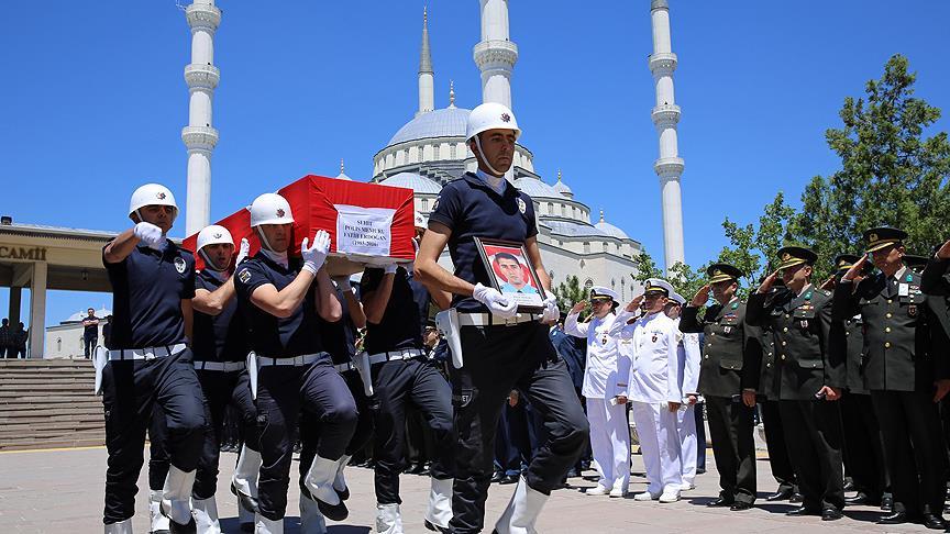 Şırnak'ta şehit olan polis memuru Fatih Erdoğan, Kocatepe Camisi'nde düzenlenen törenle son yolculuğuna uğurlandı.