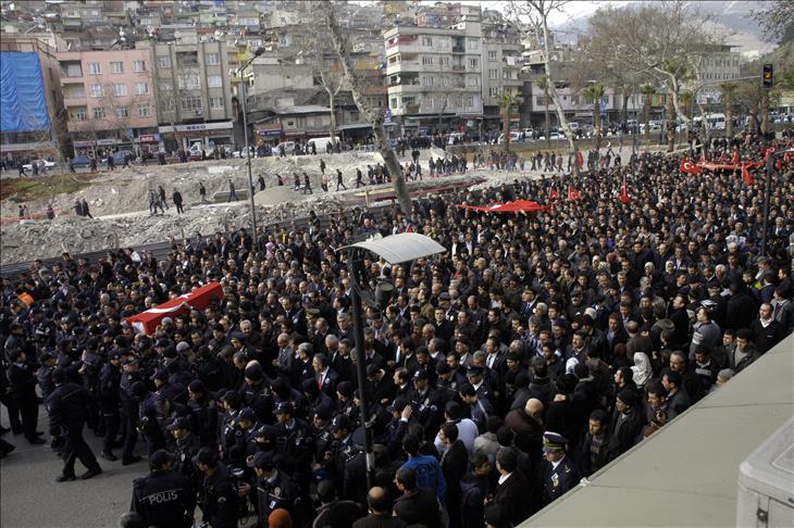 Polis memuru Cengiz Engizek'in naaşı, Kahramanmaraş Müftüsü Muhammet Gevher'in kıldırdığı cenaze namazının ardından Şeyhadil Mezarlığı şehitliğinde toprağa verildi.