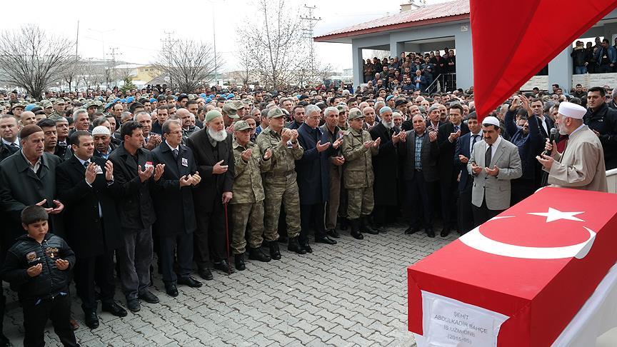 Ağrı'nın Doğubayazıt ilçesindeki terör saldırısında ağır yaralanan ve tedavi gördüğü hastanede şehit olan Uzman Onbaşı Abdulkadir Bahçe için Van'ın Erciş ilçesi Aşağı TOKİ Sahil Kent Mahallesi'ndeki Büyük Hafız Camisi'nde tören düzenlendi.