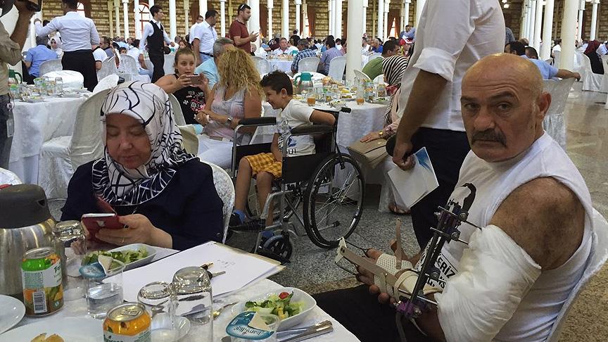 Darbe girişimi sırasında İstanbul'da şehit olan vatandaşların aileleri ile gaziler ve yakınları, yemeğin düzenlendiği Feshane Uluslararası Fuar Kongre ve Kültür Merkezinde, AK Parti İl Başkanı Selim Temurci ve Eyüp Belediye Başkanı Remzi Aydın tarafından karşılandı.