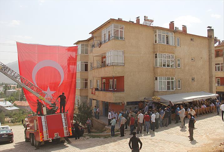 Daha sonra ailenin yaşadığı Karaçay Mahallesi'ndeki evlerinin balkonuna Türk bayrağı asıldı.
