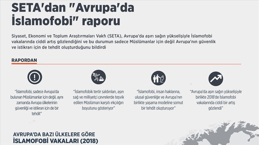 Siyaset, Ekonomi ve Toplum Araştırmaları Vakfı (SETA), Avrupa'da aşırı sağın yükselişiyle İslamofobi vakalarında ciddi artış gözlendiğini ve bu durumun sadece Müslümanlar için değil Avrupa'nın güvenlik ve istikrarı için de tehdit oluşturduğunu bildirdi.