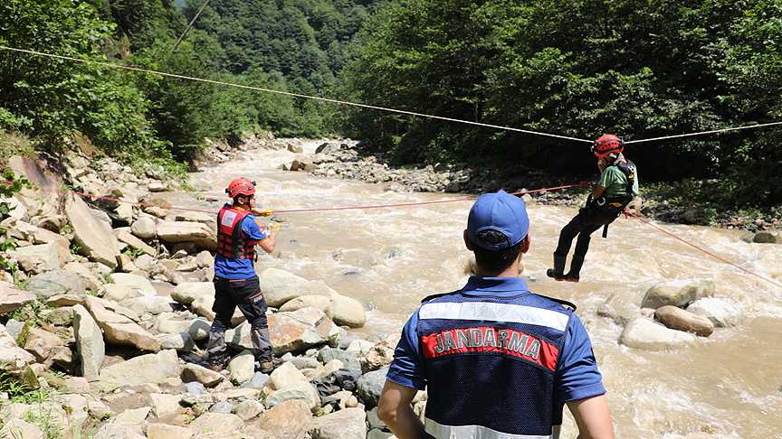 Arazide bulunan Merve, Ümre ve Mevlüt Sancaktutan ile Gürcistan uyruklu bir kişi, ekiplerin yardımıyla halata tutunarak derenin karşısına geçti.