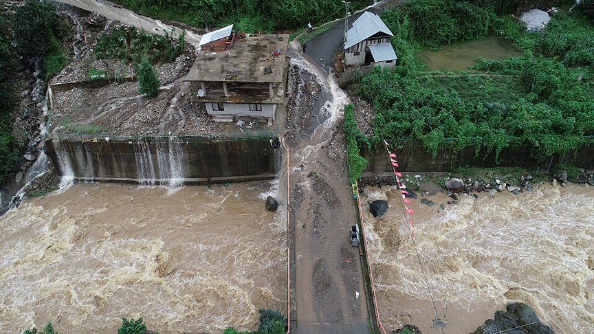 Rize'de şiddetli yağış nedeniyle bazı dereler taştı.