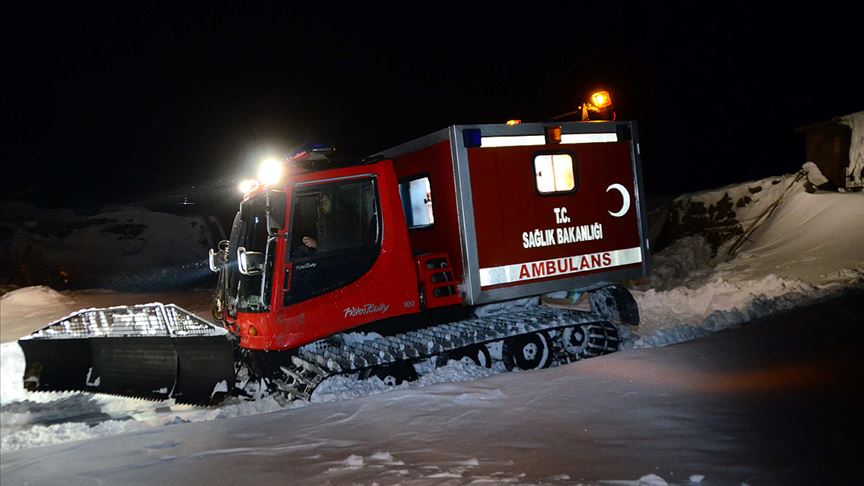 Nemrut Dağı eteklerinde paletli ambulansla yola devam eden ekipler, hava sıcaklığınının sıfırın altında 18 dereceye düştüğü bölgede zorlu bir yolculuğun ardından köye ulaştı.