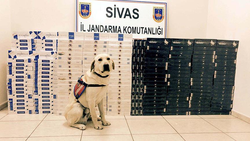 Sivas Valiliğinden yapılan yazılı açıklamaya göre, Gürün ilçesi Bahçeiçi Köyü mevkisinde yol kontrolü yapan jandarma ekipleri, bir minibüsü durdurdu. Tütün tespit arama köpeği "Görev"in tepki vermesi üzerine minibüste arama yapan jandarma ekipleri, aracın bagaj kısmına gizlenmiş 13 bin 760 paket gümrük kaçağı sigara yakalandı.