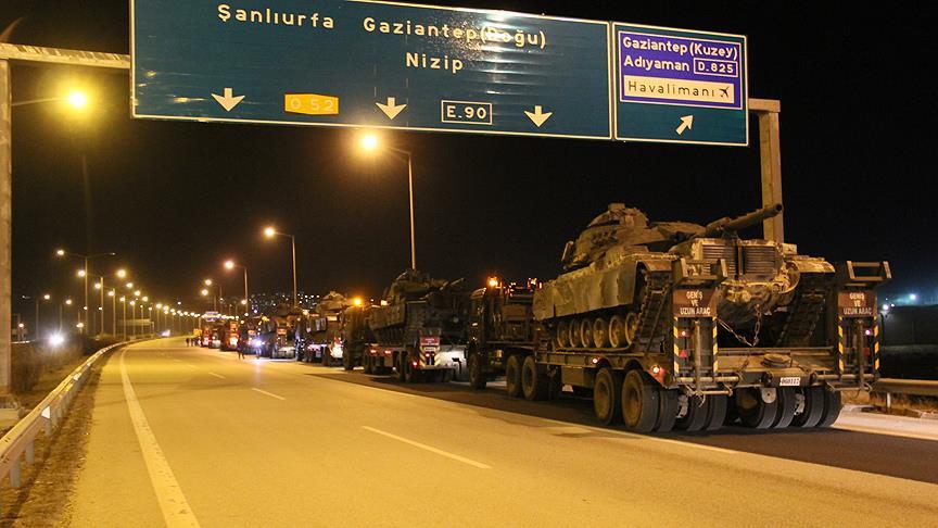 Sınıra zırhlı araç sevkiyatı kapsamında görevlendirilen 28'inci Mekanize Piyade Tugay Komutanlığı birliklerine ait unsurlar, Gaziantep'e ulaştı. Araçlar, Adana-Gaziantep otoyolunu kullanarak sınıra ilerleyişini sürdürdü.