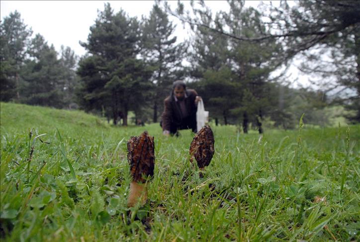 Yağışların artmasının ardından çam ağaçları arasında yetişen ve bölge halkı tarafından toplanan kuzu göbeği mantarı, tüccarlar tarafından satın alınıyor.