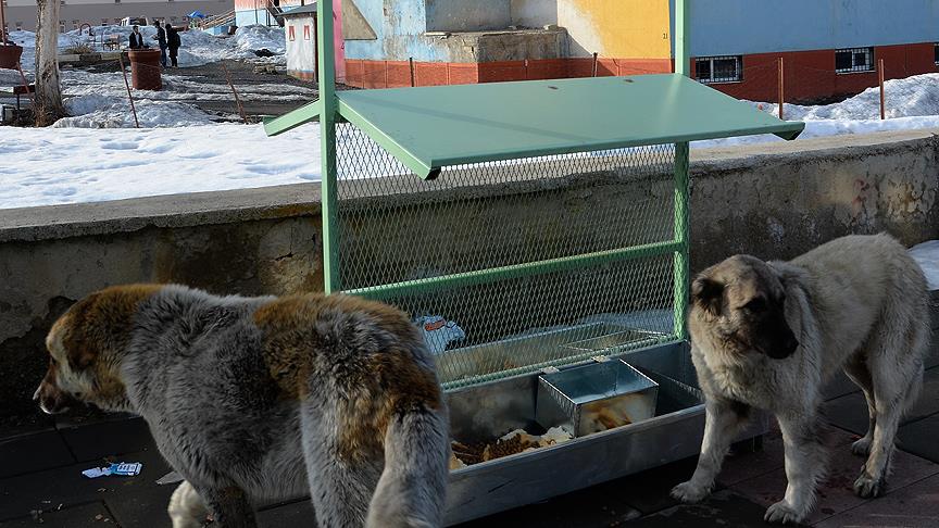 Erzurum'un Çat ilçesinde, sokak hayvanları için mama istasyonları kuruldu.