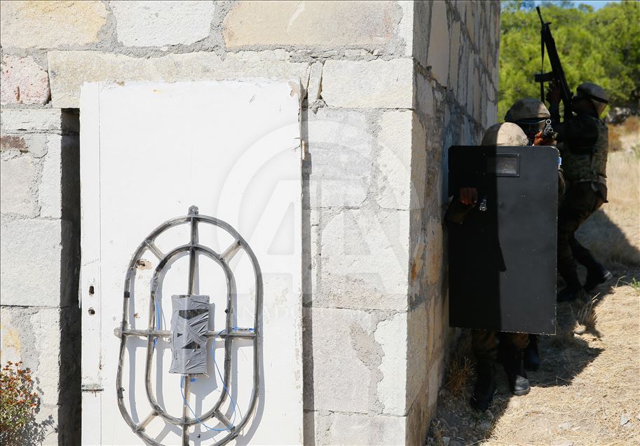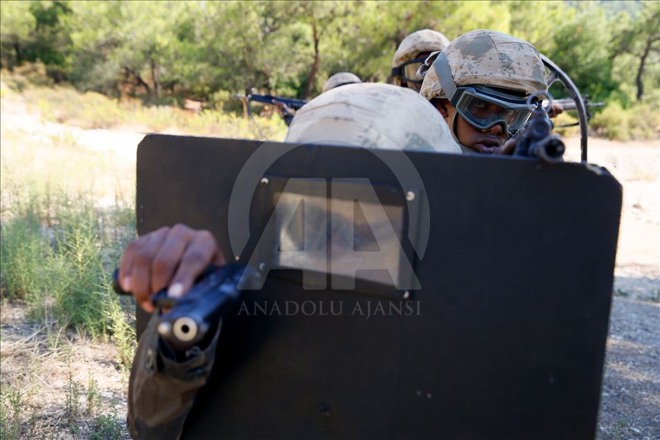 Somalili polisler, Foça Jandarma Komando Okulu ve Eğitim Merkezi Komutanlığında terörle mücadele eğitiminden geçiriliyor. Türk İşbirliği ve Koordinasyon Ajansı Başkanlığı (TİKA) koordinesinde, İçişleri Bakanlığı ile Somali İç Güvenlik Bakanlığı arasında imzalanan anlaşma kapsamında Türkiye'ye davet edilen bir grup Somalili polise mayın, mühimmat ve el yapımı patlayıcı konularında kurs veriliyor. ( Evren Atalay - Anadolu Ajansı )