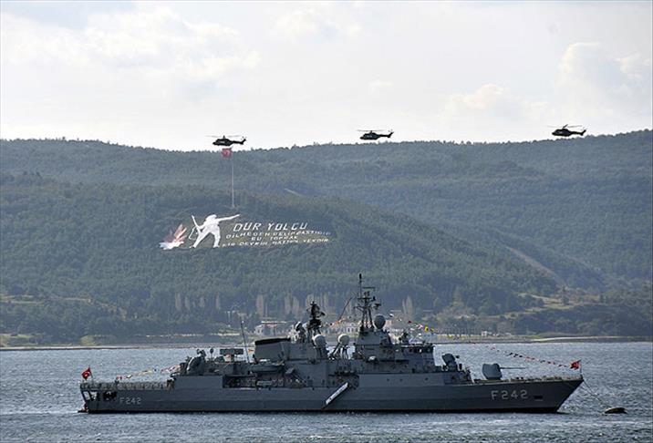 Donanmaya ait fırkateyn, korvet, hücumbot, denizaltı, mayın avlama, karakol ve sahil güvenlik gemileri, karakol uçakları ile kuvvet komutanlıkları bünyesindeki helikopterler de Çanakkale Boğazı'ndan geçiş provası yaptı.