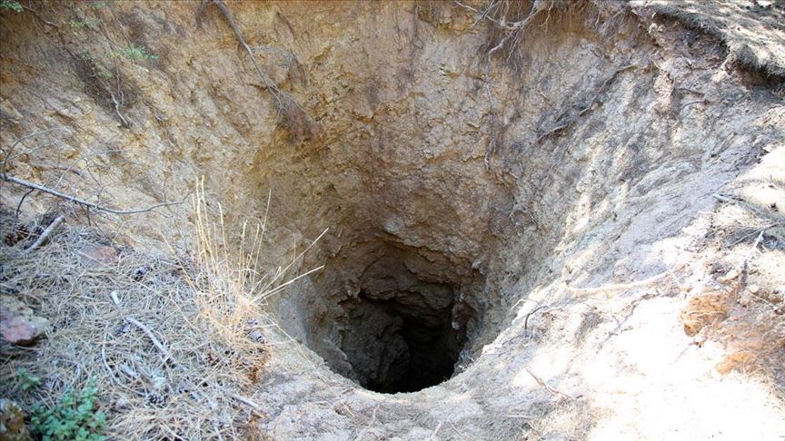 Manisa Spil Dağı Milli Parkı'nda keşfedilen 15 metre çapında ve yaklaşık 100 metre derinliğinde olduğu tahmin edilen obruğun oluşum nedeni araştırılıyor.