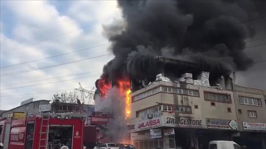 Akşemsettin Mahallesi Atatürk Caddesi'ndeki Oto Sanayi Sitesi içerisinde, henüz bilinmeyen nedenle meydana gelen patlamanın ardından yangın çıktı.