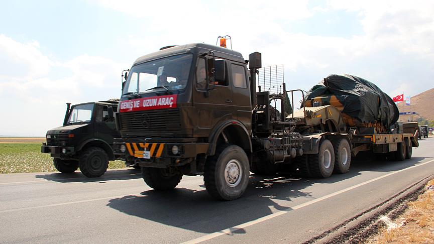 Güvenlik önlemleri altında götürülen askeri araçların, sınırın Suriye tarafındaki askeri birliklere takviye amaçlı gönderildiği öğrenildi.