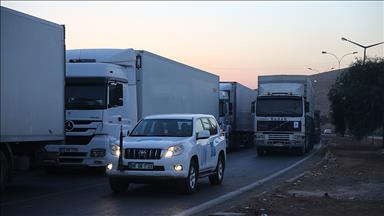 Yardımları taşıyan tırlar daha sonra Reyhanlı ilçesindeki Cilvegözü Sınır Kapısından geçiş yaptı.
