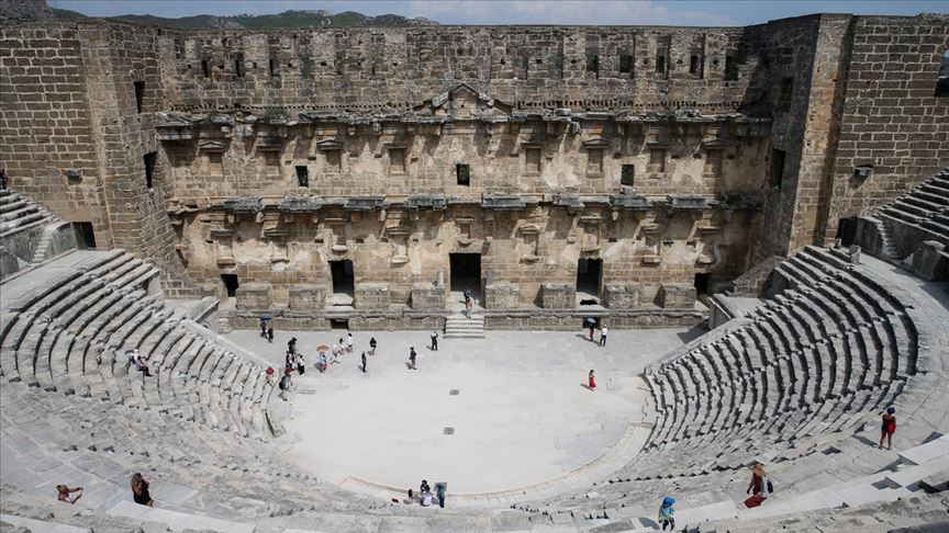 Turizmde bu yıl rekor kıran Antalya'da, Aspendos Antik Tiyatrosu da yerli ve yabancı turistlerin en çok ziyaret ettiği tarihi yapılar arasında yer alıyor.