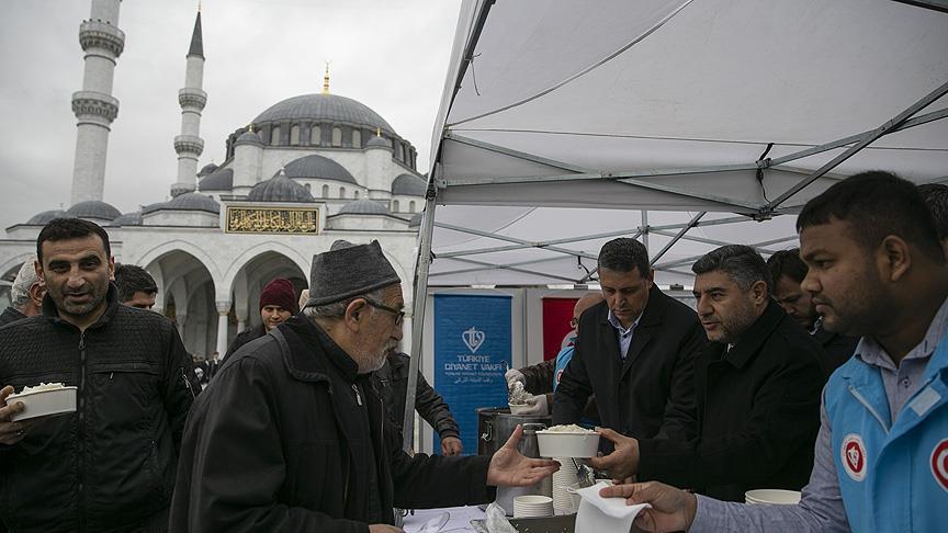 TDV Genel Müdürü Mehmet Savaş Polat'ın da aralarında bulunduğu heyet, Melike Hatun Camisi'nde cuma namazı çıkışı toplanan vatandaşlara yemek ikramında bulundu.