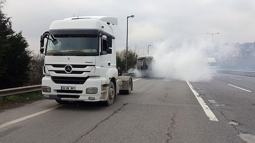 Alınan bilgiye göre, İstanbul yönüne giden Mesut Soybudak’ın kullandığı 43 KB 661 plakalı tırın dorse balataları, Göl Mahallesi mevkisinde yanmaya başladı.