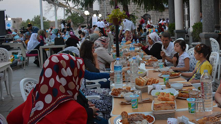 Türkiye Beyazay Derneği Diyarbakır Şubesi tarafından tarihi İç Kale'de düzenlenen iftar programında, Sur ilçesindeki terör saldırılarında mağdur olan 350 kadın bir araya geldi.