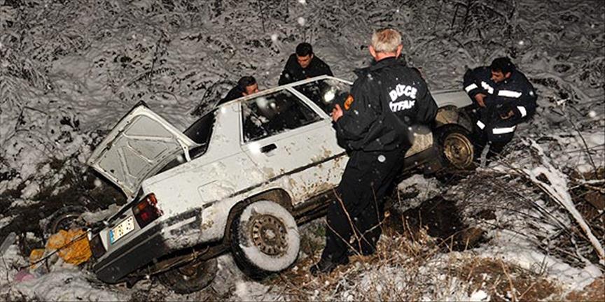 Selçuk Canoğlu idaresindeki 81 BG 457 plakalı otomobil, Fevzi Çakmak Mahallesi Mimar Sinan Caddesi kanal yolunda, yoğun kar yağışı nedeniyle yaklaşık 5 metre derinliğindeki dere yatağına devrildi.