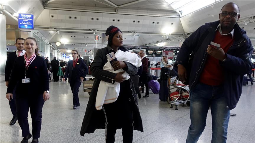 Sağlık kontrollerinin tamamlandığı hastaneden annesi Musuamba Mıchoukayembe'nin (21) kucağında Atatürk Havalimanı Dış Hatlar Gidiş Terminali'ne gelen Benel bebeği, Turkish Ground Services (TGS) yer hizmetleri şirketi görevlileri karşıladı.