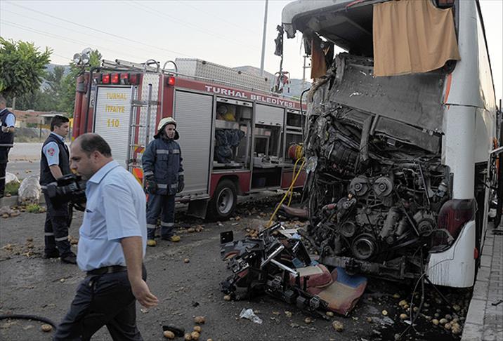 Tokat'ın Turhal ilçesinde, Vedat Demir'in kullandığı patates yüklü 05 ET 567 plakalı kamyon, Borsa Mahallesi yakınlarında, yolcu indirdiği sırada Latif Cüneyt Aboğlu idaresindeki 19 UA 343 plakalı otobüse çarptı.