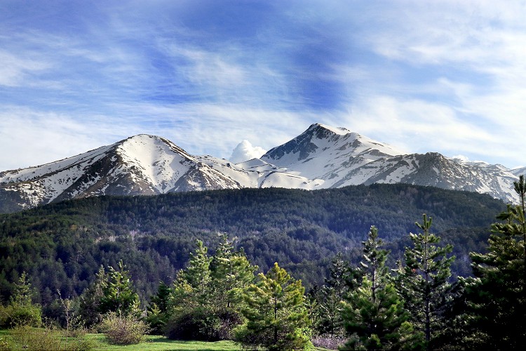 Konya'nın Beyşehir ilçesi ile Isparta il sınırında yer alan kent ormanlarının çevrelediği Orta Toros Dağları'nın zirveleri karla kaplıyken, alçak kesimlerde ise ilkbahar mevsimi etkisini gösteriyor.