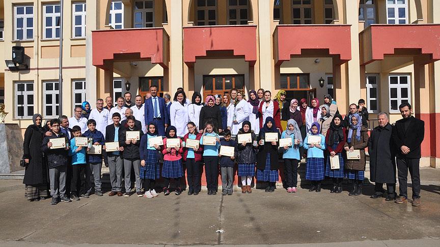 Bahçecik İmam Hatip Ortaokulunda, yardım edilen 15 yetim için en fazla desteği veren 15 sınıfa İHH tarafından fidan ve kahramanlık belgesi dağıtıldı.