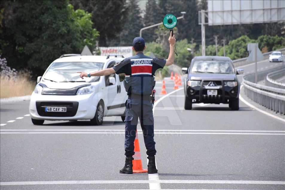Bayramda binlerce kişinin tatilini geçirmek için geldiği kıyı kesimlerde artan trafik nedeniyle Muğla'da polis ve jandarma Bölge Trafik ekipleri, sabah saatlerinden itibaren turistik ilçelere giden kara yollarında sürücülerin yol güvenliği için uygulama yapıyor.
