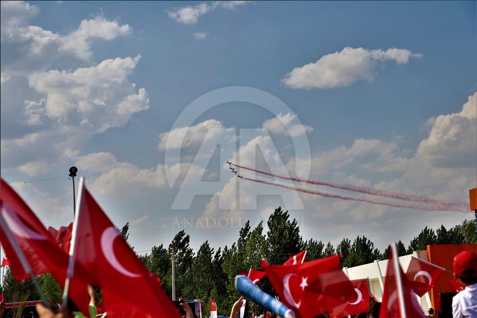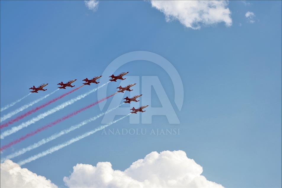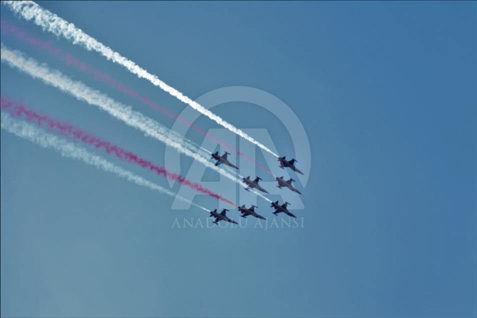 Gökyüzünde çeşitli hareketlerle izleyicilerden beğeni alan gösteri yaklaşık 20 dakika sürdü. Gösterinin sonunda ekipler tarafından gökyüzüne kalp figürü çizildi.