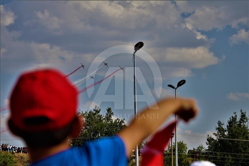 Yalvaç Otogarında düzenlenen etkinlik, Yalvaç Belediyesi mehter takımının gösterisiyle başladı. Otogar ve çevresindeki tepeleri dolduran vatandaşlar Türk Yıldızları'nın gösterisini ilgiyle izledi.