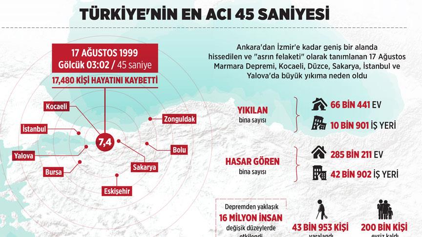 Merkez üssü Kocaeli'nin Gölcük ilçesi olan ve "asrın felaketi" olarak tanımlanan Marmara Depremi, Kocaeli, Sakarya, İstanbul, Düzce ve Yalova ile civar il ve ilçelerde yıkıma yol açtı.